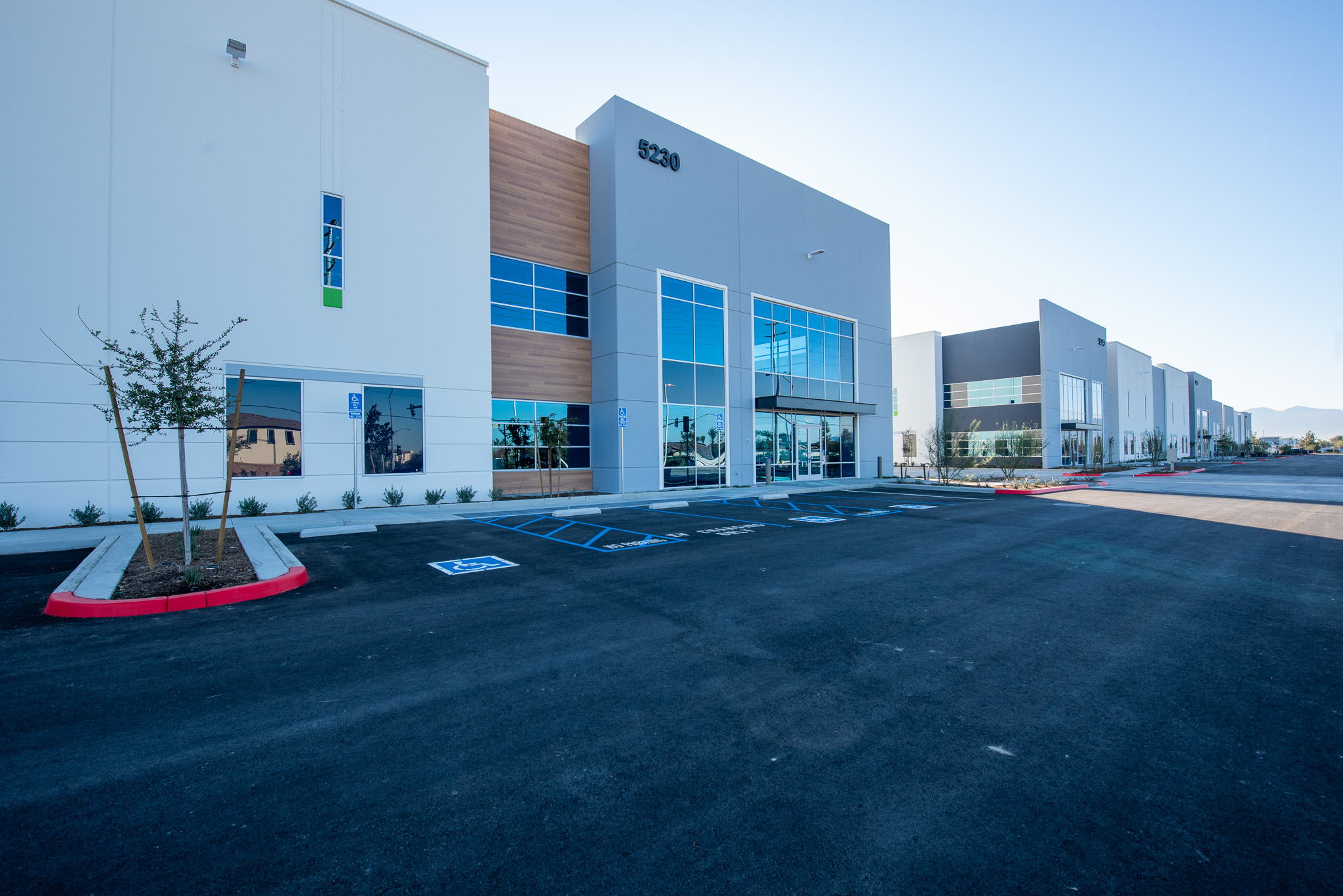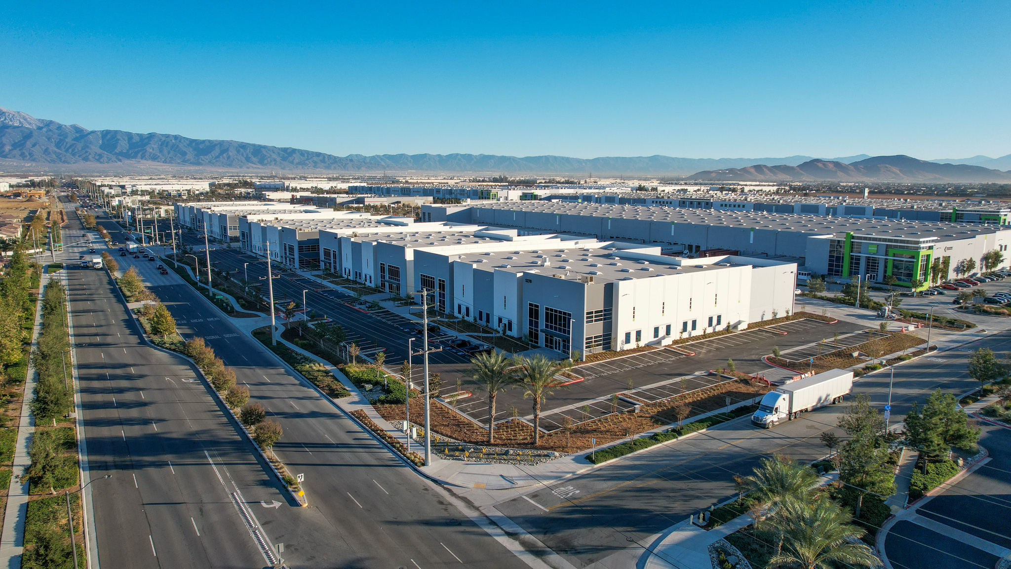A multi-building business park in Eastvale, California that was constructed utilizing a lower-embodied carbon ready-mix, Vertua® low-carbon concrete